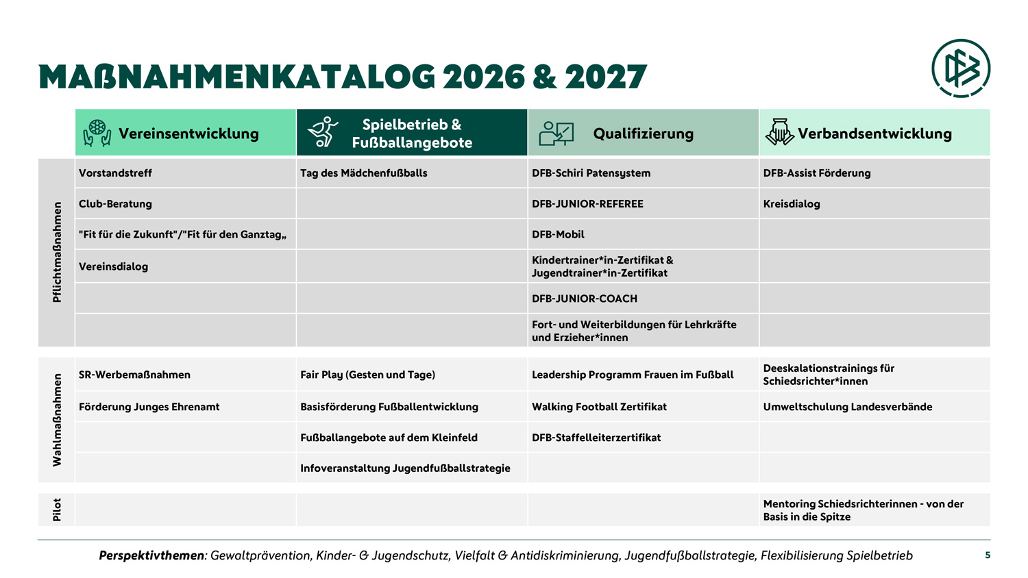 Weitere Informationen zum Masterplan Amateurfußball 2026–2029 inklusive einer Übersicht aller Maßnahmen finden Sie hier sowie auf DFB.de.