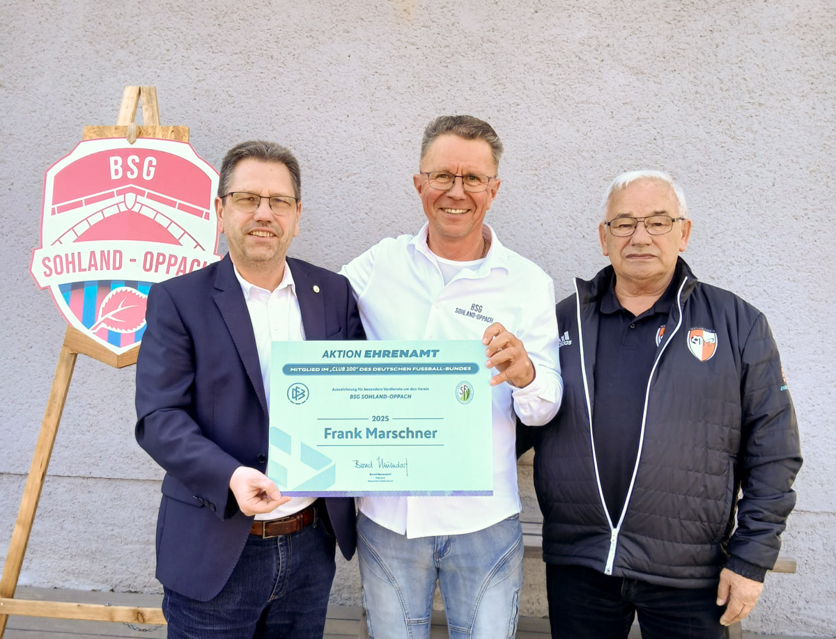 Aus bundesweit allen Kreissiegern werden zusätzlich die einhundert engagiertesten Ehrenamtlichen ausgewählt und für ein Jahr in den "Club 100" des DFB aufgenommen. Der „Club 100“ ist eine Initiative zur Anerkennung besonders engagierter Ehrenamtlicher im Fußball. Diese erwartet die Einladung zur offiziellen DFB-Ehrungsveranstaltung im deutschen Fußballmuseum vom 17. - 19. April in Dortmund. SFV-Vizepräsident Jörg Gernhardt hat in den letzten Wochen vier engagierte Persönlichkeiten als neue sächsische Mitglieder des „Club 100“ ausgezeichnet und war dafür direkt in den Heimatvereinen. Zu den Geehrten zählt Claus Anke vom SV Brehmer Leipzig, Nicole Reuschel vom SV Roland Belgern, Adrian Dennstedt vom SV Muldental Wilkau-Haßlau und Frank Marschner von der BSG Sohland-Oppach.
