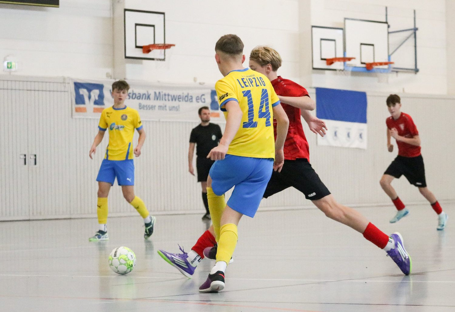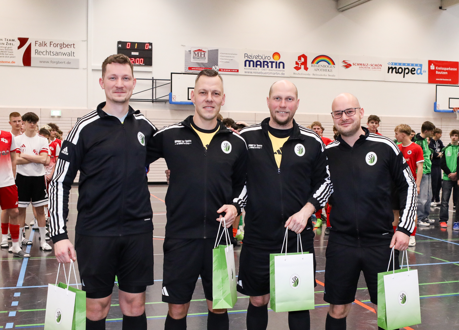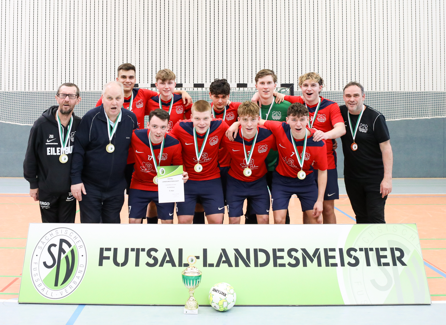 Die Futsal-Landesmeisterschaften der Junioren sind entschieden. Vier Endrunden liefen am letzten Wochenende in Bischofswerda, Großenhain, Dresden und Mittweida. Für den Jugendausschuss um den Vorsitzenden Jens Vöckler ein intensives Wochenende mit ausgezeichneten Gastgebern, gut gefüllten Hallen und phasenweise richtig guten Futsal. Dank gilt vor allem den Ausrichtern, Schiedsrichtern, Turnierleitern und SFV-Präsidiumsmitgliedern, die bei den Siegerehrungen die Pokale an die neuen Futsal-Landesmeister übergaben.