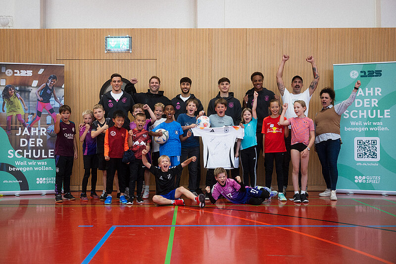 Mit Said El Mala (1. FC Köln), Forzan Assan Ouedraogo (RB Leipzig), Mert Kömür (FC Augsburg) und Muhammed Damar (TSG Hoffenheim) überraschten vier U 21-Nationalspieler die Kids der Grundschule am Addis-Abeba-Platz am Montag mit einem spontanen Besuch. Das Jahr der Schule ist frisch gestartet und in diesem Rahmen wurde natürlich gemeinsam mit den Kids in kleinen Gruppen auf mehreren Feldern und mehreren Toren gekickt. Weiterhin konnten auch unterschiedliche Themen mit dem Schulpersonal besprochen werden, die ihren Kindern bereits ein abwechlungsreiches Sportangebot unterbreiten.
