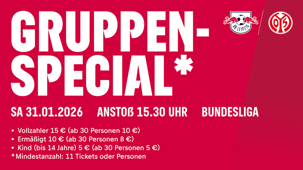RasenBallsport Leipzig bietet für das Heimspiel gegen den FSV Mainz 05 am 31. Januar besondere Konditionen für Gruppen…