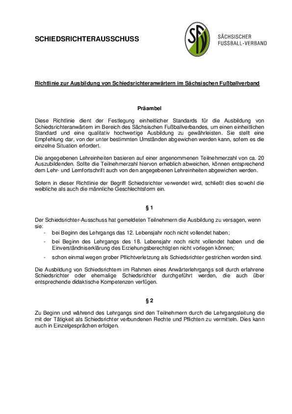 47030804508500 Sächsischer Fußball-Verband e.V. SchiedsrichtersonderberichtSpieldaten Paarung: Spielklasse: Altersklasse: Spieldatum: Spielnummer: Endergebnis: Vorkommnis / Feldverweis auf Dauer…