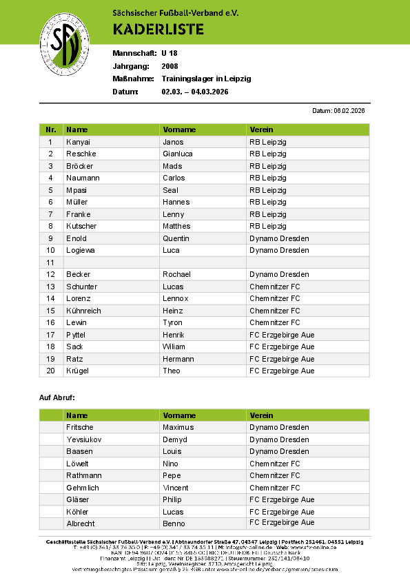 U 18-Junioren Für den ältesten Landesauswahl-Kader beschränken sich die Maßnahmen in der Saison nur auf wenige. Da der DFB und der NOFV, in dieser Altersklasse keine Sichtungsturniere mehr…